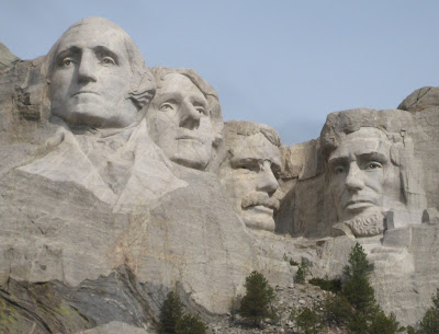 We decided to take one of the recommended driving tours through the Black Hills. After driving through the small town of Keystone, our first stop was Mount Rushmore, where the granite portraits of George Washington, Thomas Jefferson, Theodore Roosevelt and Abraham Lincoln overlook the Black Hills. In 1927, sculptor Gutzon Borglum began carving this memorial dedicated to the history of America with the help of over 400 workers. Work was done on an "on and off method" due to the lack of funding. Work also was stopped during World War II. Borglum died in March 1941 and his son, Lincoln, supervised the completion of the heads. These huge granite carvings represent the American ideals for which our country was founded back in 1776.